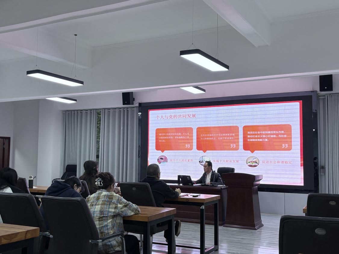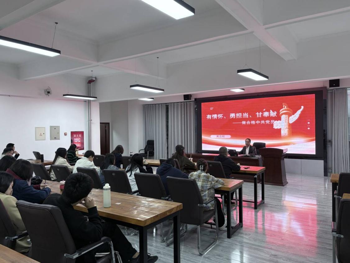 本次党课围绕如何成为一名合格和优秀党员展开。党员要明确入党动机,坚守坚定政治立场、践行服务人民宗旨,将个人价值融入社会贡献中,切实提升社会责任感。黄志刚书记聚焦党员个人发展,提出通过学习党的理论知识与思想,强化个人政治素养,在实践中锻炼领导力,实现个人与党的共同发展。本次党课引导党员明晰入党初心,围绕党员的成长与责任,实现个人发展与社会责任的统一,为学院党建与教学工作凝聚思想共识。