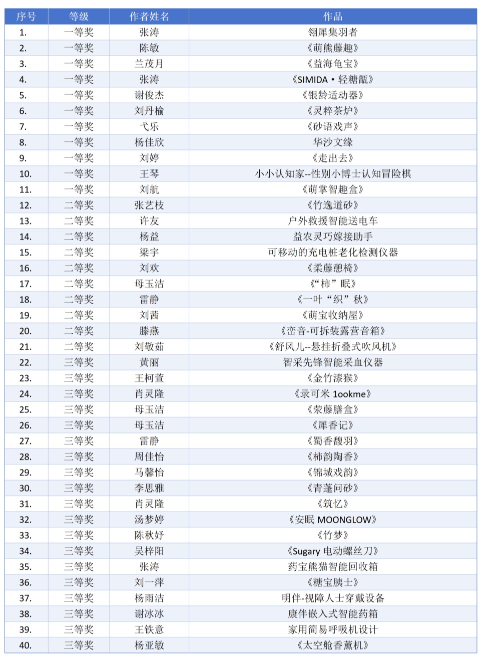 图一 获奖名单