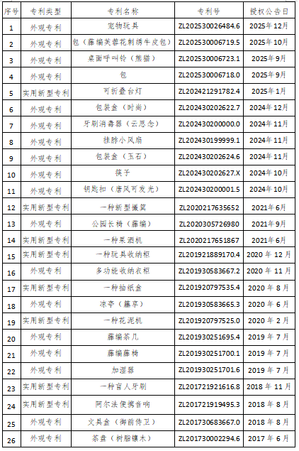 2020年成功转化外观专利3件:《女士香水瓶》《座椅-生长系列1》《座椅-生长系列2》。