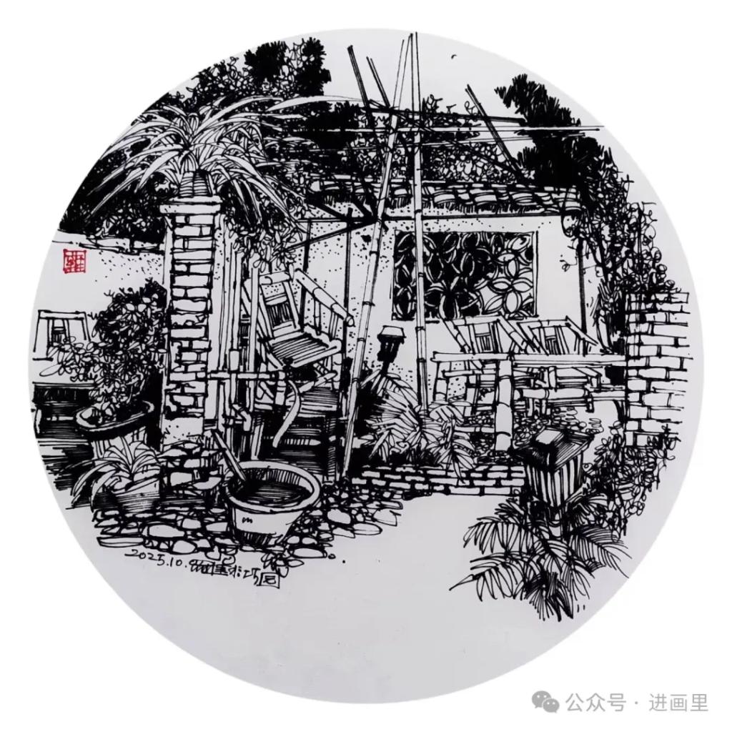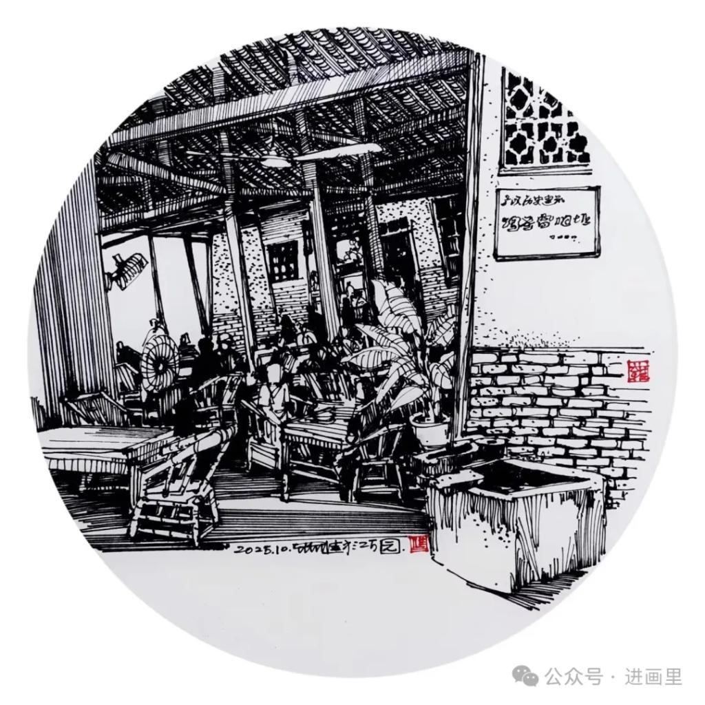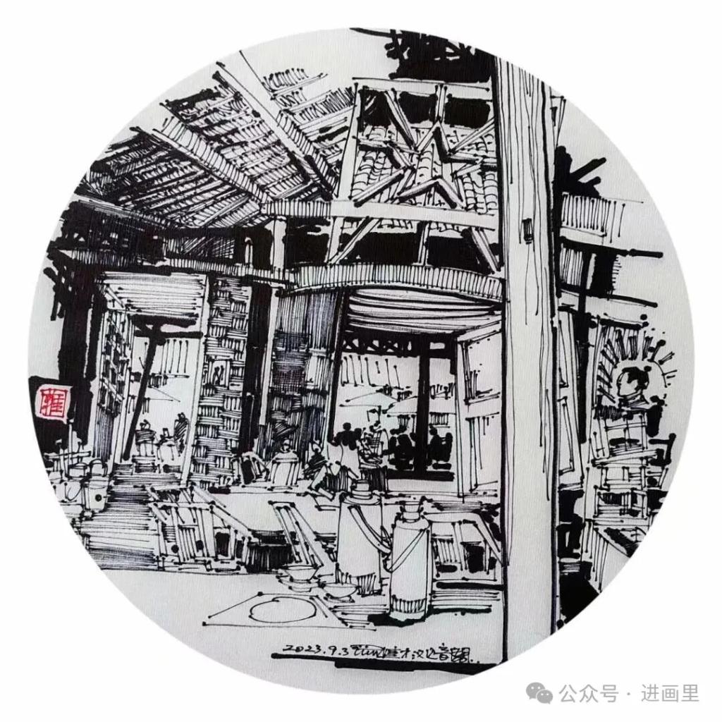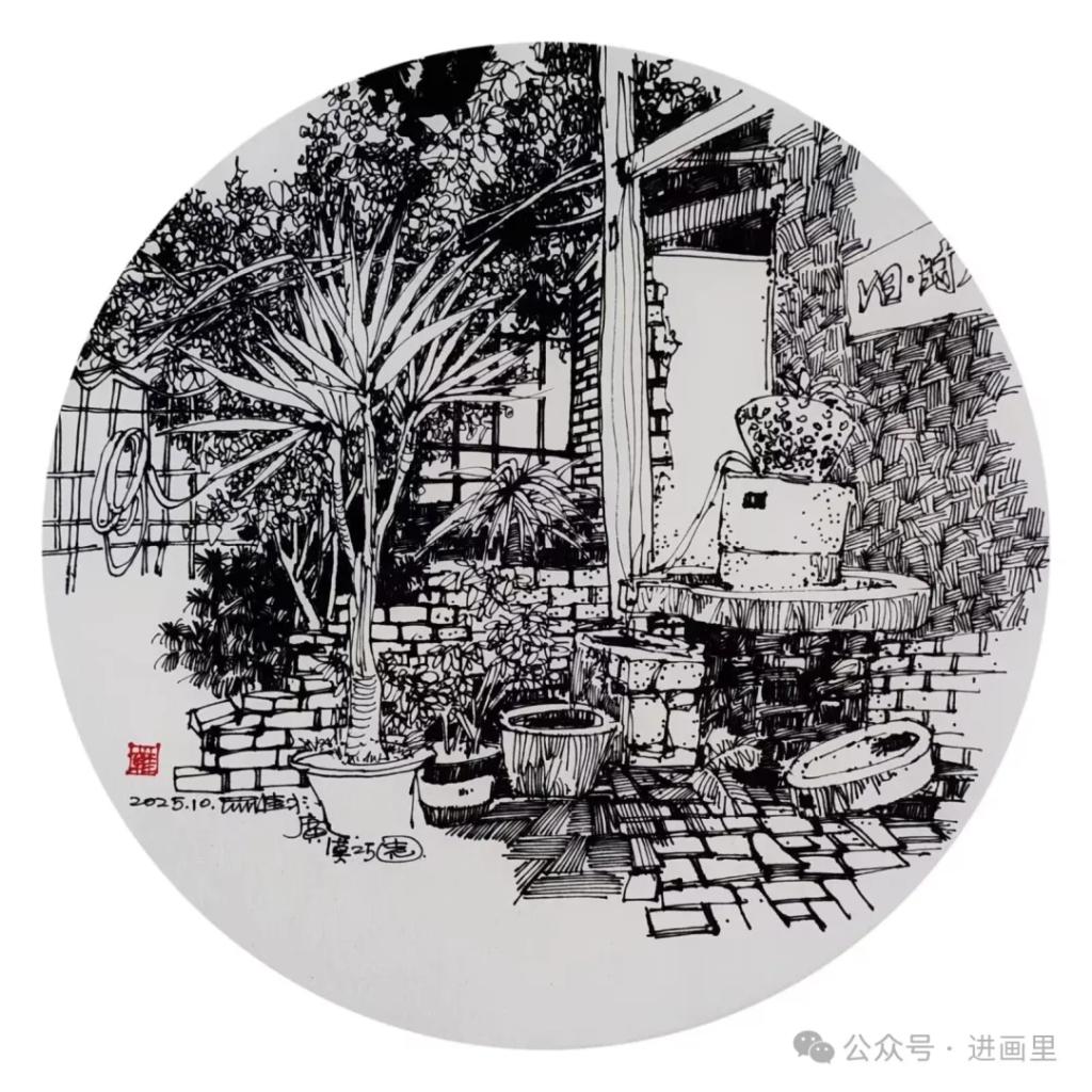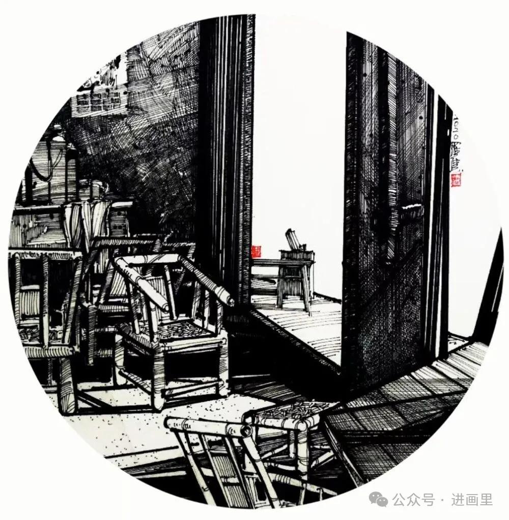 游走于黑白的线条,是罗进教授与外面世界对话的方式,黑白瞬间:乡村旧巷,市井茶馆,风景与静物……收进笔尖,有景得记。