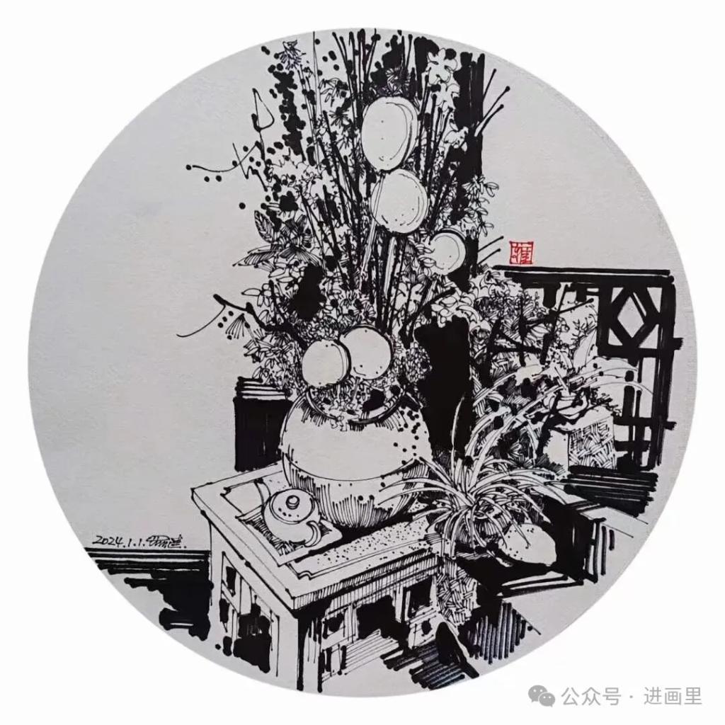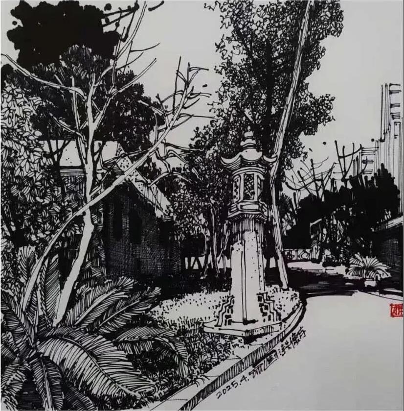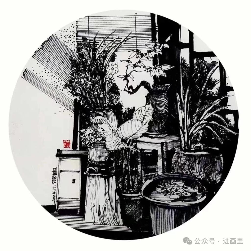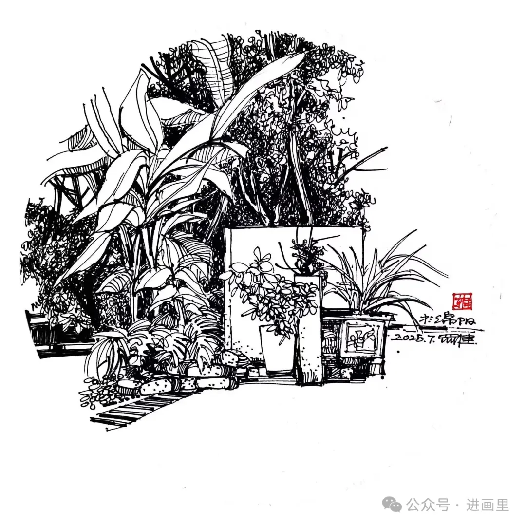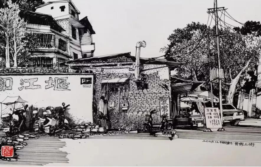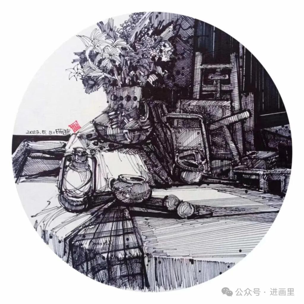 游走于黑白的线条,是罗进教授与外面世界对话的方式,黑白瞬间:乡村旧巷,市井茶馆,风景与静物……收进笔尖,有景得记。