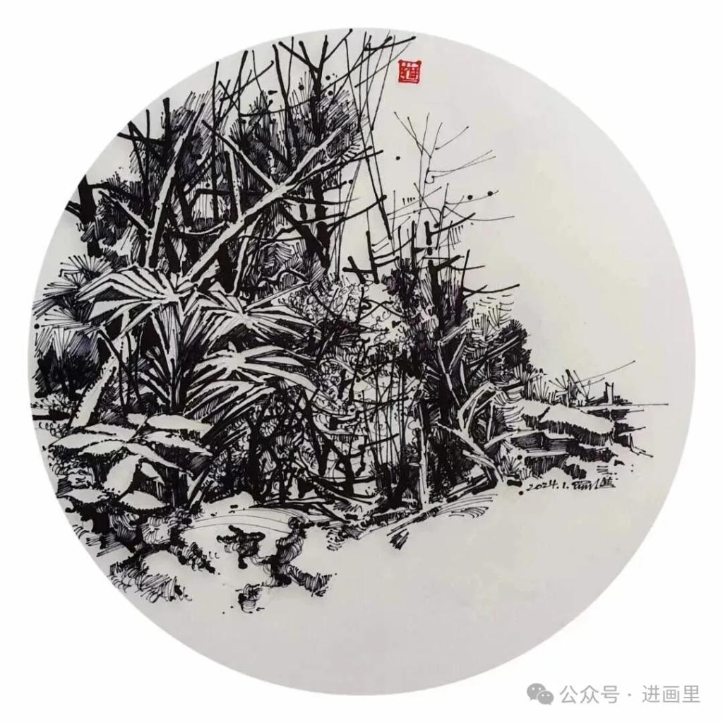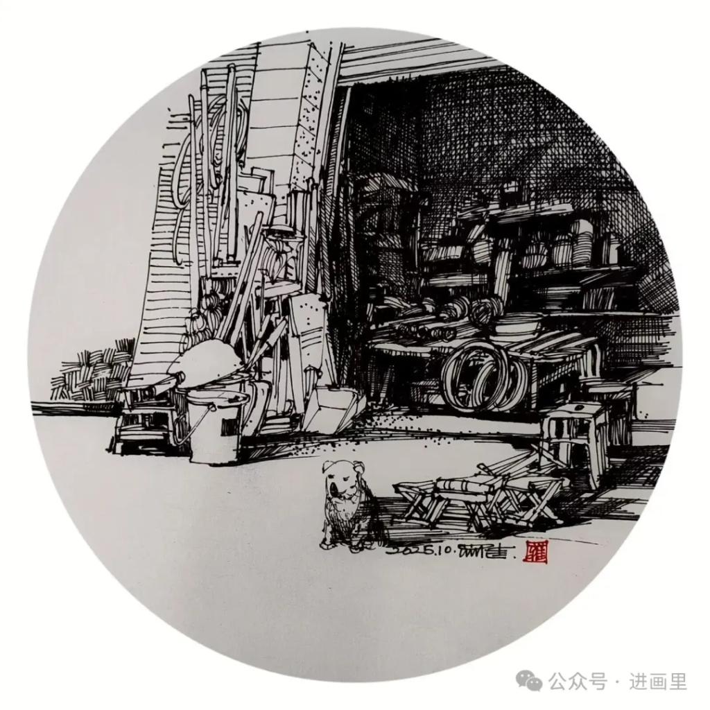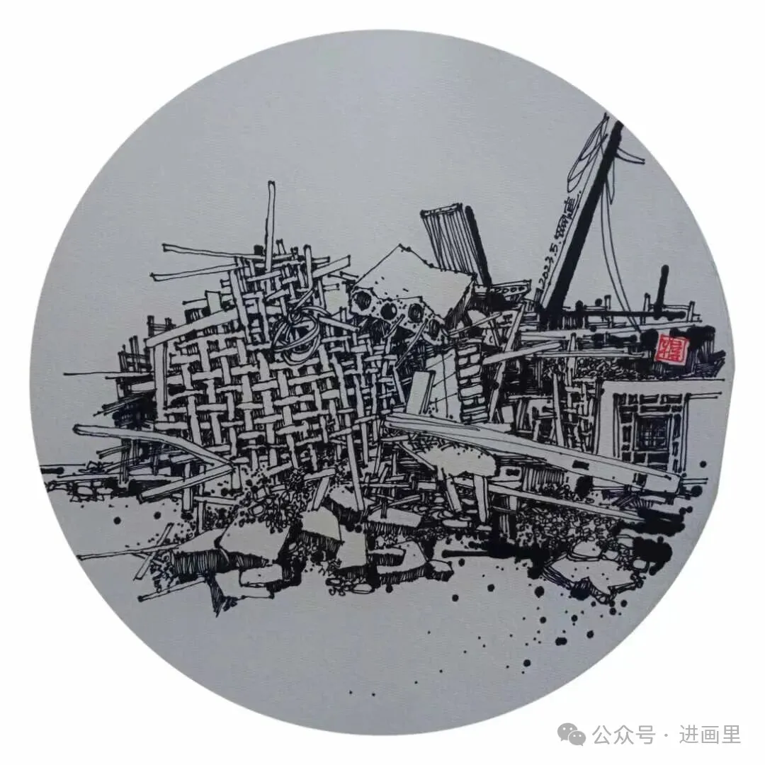 无需色彩的渲染,只要黑白的交织,都是生活的呼吸:缓与急、轻与重、钝与拙、曲与直、疏与密、黑与白、点线面……——老巷里斑驳的砖墙,被阳光剪出锐利的影;农家院角的一草一木,风里舒展着倔强的枝桠;废弃棚屋杂器旧物,也在粗粝的线条里,透出时光沉淀的温柔。