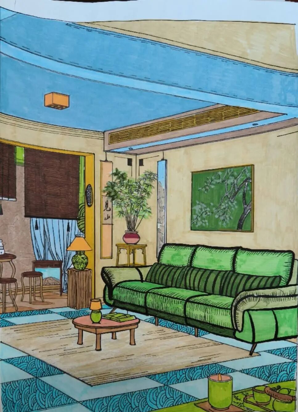 色彩基础是环境艺术设计专业的核心入门内容,对学生的专业成长有着关键的奠基作用。它帮助学生系统掌握色相、明度、纯度三大要素,理解色彩的冷暖对比、互补搭配等规律,建立科学的色彩认知体系。