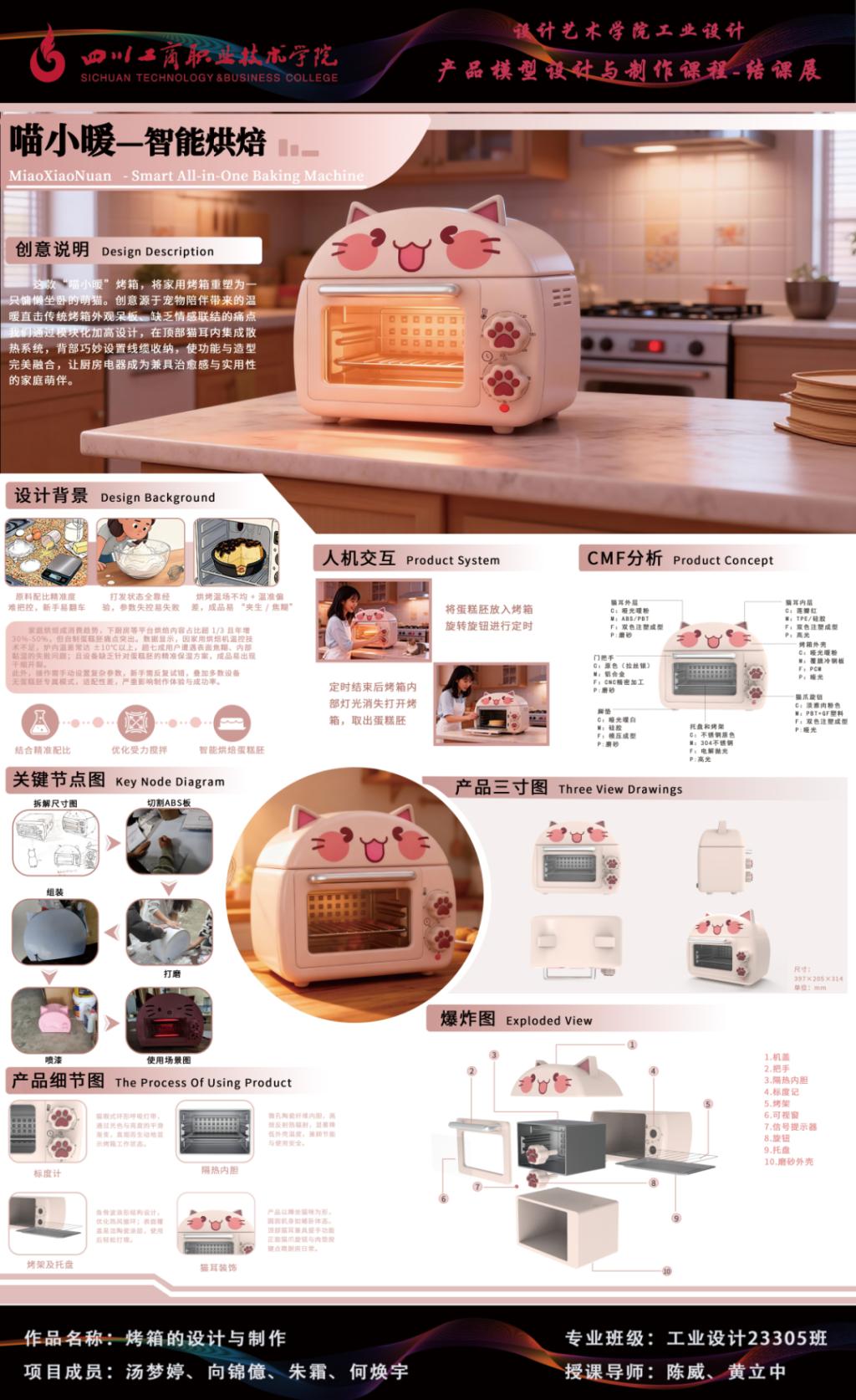 这款“喵小暖”烤箱,将家用烤箱重塑为一只情坐卧的精猫。创意源于宠物陪伴带来的沼暖直击传统烤箱外观呆板。缺乏情感联结的痛点们通过楼块化加高设计,在顶部猫耳内集成散热系统,背部巧妙设置线级收纳,使功能与造型完美融合,让厨房电器成为兼具治愈感与实用性的家庭萌伴。